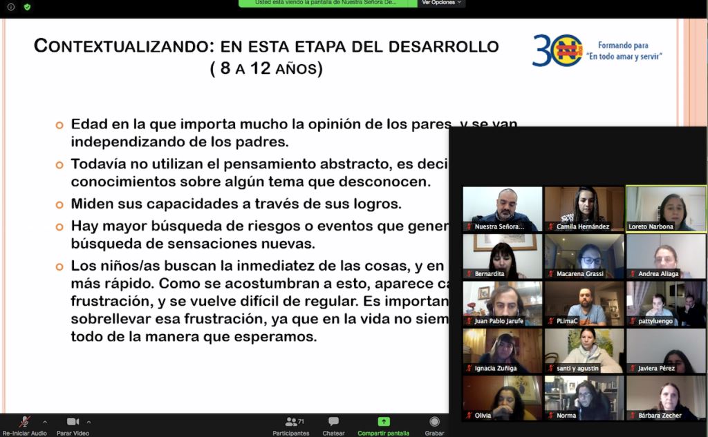 El lunes 17 de mayo se realizó en formato virtual una charla dirigida a los/as apoderados/as y a todo el equipo del segundo ciclo, con el objetivo de poder conversar y reflexionar sobre el “Mundo virtual de nuestros hijos e hijas”.