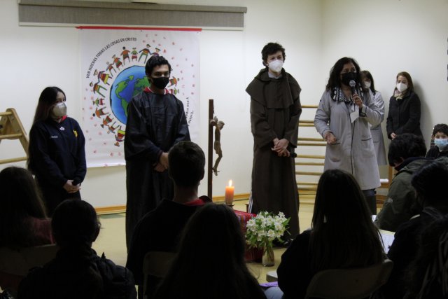 Iniciamos la celebración familiarizándonos con la figura de Alberto Hurtado, un hombre real, chileno, que caminó por las calles de nuestra ciudad.