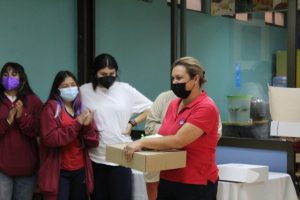 Este año, la dirección del colegio organizó una oración dirigida por Andrea Fones en donde le agradecieron, a nuestras y nuestros auxiliares de servicio y aseo, por todo el apoyo que brindan a la Comunidad NSDC, por su increíble trabajo que permite que el colegio mantenga su funcionamiento diario
