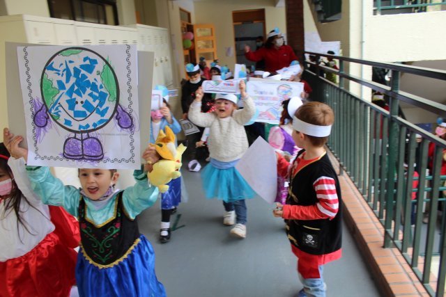 El viernes 22 de abril, las niñas y niños de Prekínder A y B realizaron una marcha por el medioambiente, en el contexto de la celebración del Día Internacional de la Tierra.