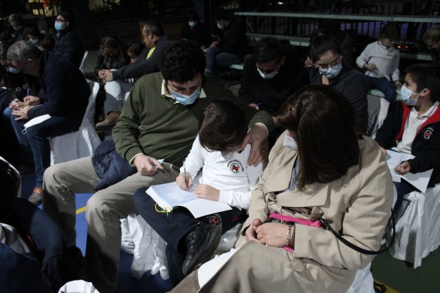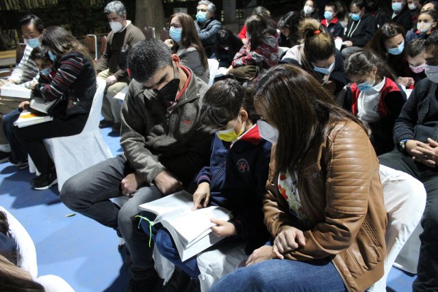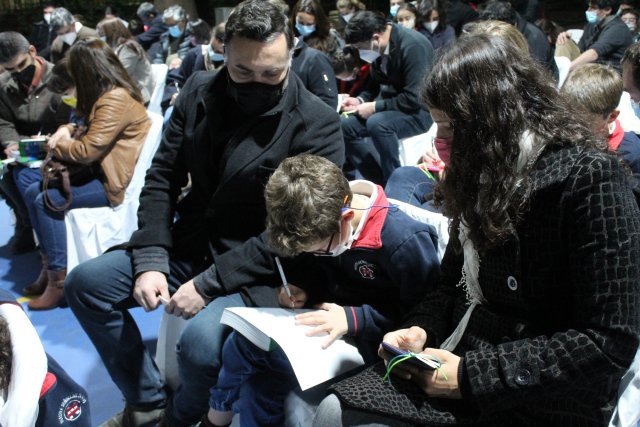 En un momento muy especial de la ceremonia, las mamás y papás fueron invitados a escribirles a sus hijas/os una dedicatoria en la parte de atrás del marcador que tiene la Biblia, bajo la primicia de que es el libro de inspiración de nuestra fe y que desde este momento en adelante las/os acompañará en muchas lecturas.