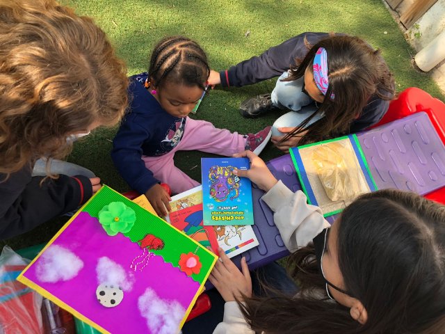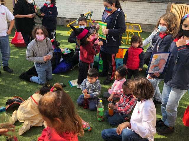 El viernes 13 de mayo las directivas de curso acompañadas por la profesora Claudia Mihovilovic e integrantes del equipo de ciclo, fueron al jardín infantil y sala cuna para entregar todos los materiales creados, allí pudieron compartir con las niñas y niños del Laurita Vicuña, quienes las/os esperaban con sonrisas y mucho entusiasmo.