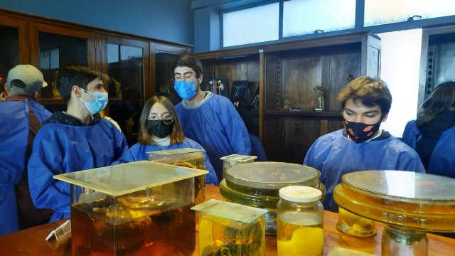 La salida pedagógica finalizó con una actividad en el Pabellón de Anatomía, en donde tuvieron la oportunidad de tener contacto con material anatómico preservado bajo la guía de ayudantes y docentes de la universidad.