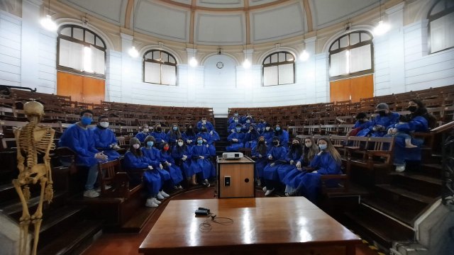 La visita contó de tres momentos, iniciaron con una “Clase Magistral” en la que un docente de la universidad les habló sobre la historia de la Anatomía, desde los albores a la actualidad, de las técnicas de conservación, de las bases anatómicas de patologías asociadas, entre otros.