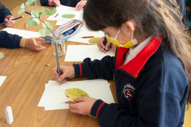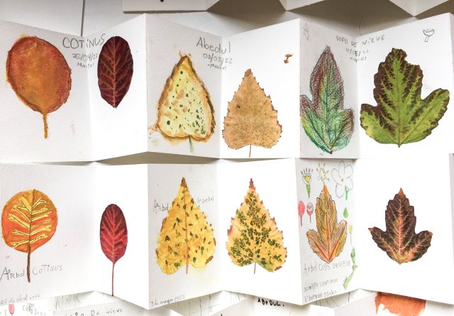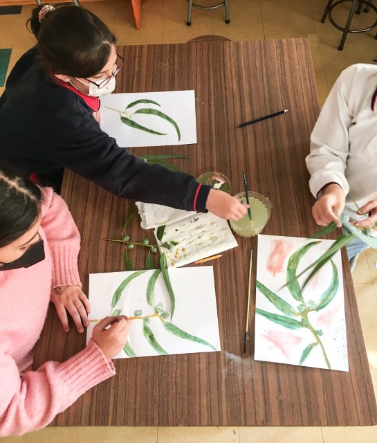 La profesora Constanza González explicó el trabajo realizado diciendo: “Durante el taller, las y los estudiantes se han enfocado en la observación sensible y minuciosa de distintas plantas. A partir de esta experiencia, han ido aprendiendo técnicas de dibujo y coloreado, además de las características de las distintas especies vegetales. Algunas de ellas nos sirvieron para representarlas a través de sus hojas que dejan caer en otoño como el árbol Cotinus, el Abedul, el Copo de nieve y el Ginkgo Biloba y, por otro lado, pudimos experimentar los aromas de la Lavanda, el Eucalipto y el Romero a través del contacto directo”.