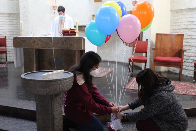 Esta celebración fue una instancia maravillosa, además de ser muy especial porque fue la primera misa realizada en una parroquia con todas/os los estudiantes desde el inicio de la pandemia.