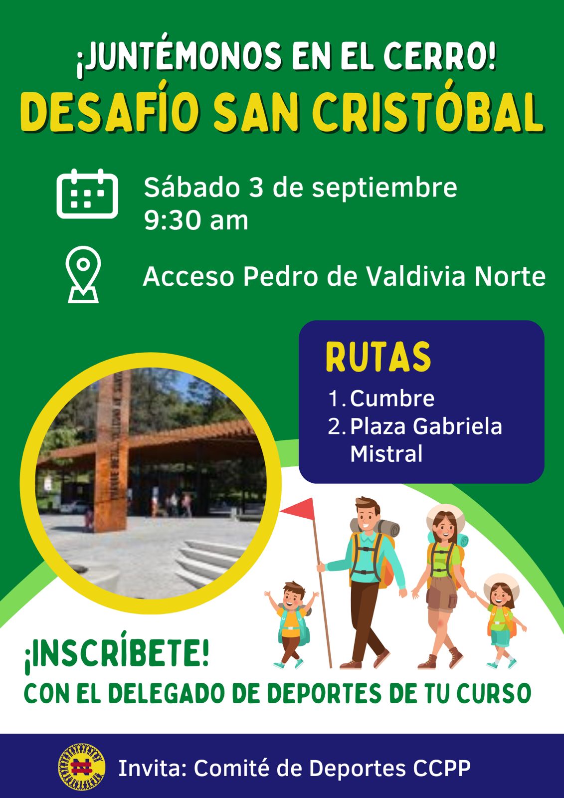 El Comité de Deportes del Centro de Padres invita a toda la Comunidad NSDC a participar, el sábado 3 de septiembre a las 9:30 am, del Desafío San Cristóbal.