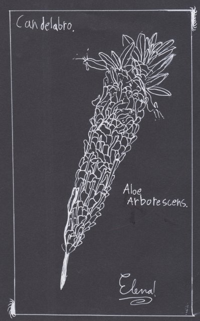 Loa a la Tierra contiene delicadas ilustraciones en tinta blanca que sirvieron como referencia para que las y los estudiantes hicieran sus propios dibujos mediante la observación directa de algunas plantas.