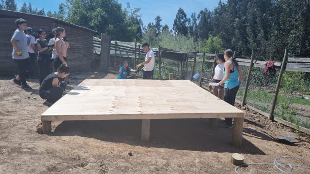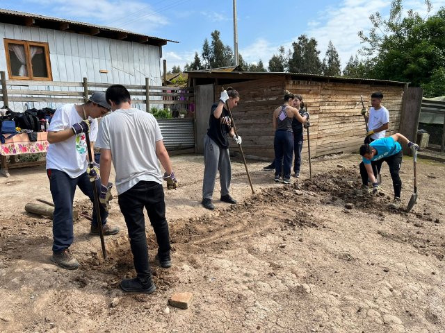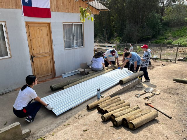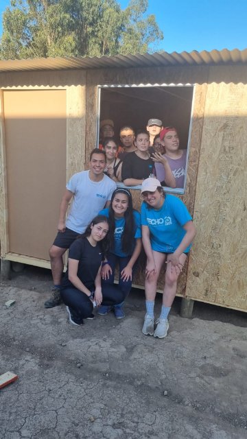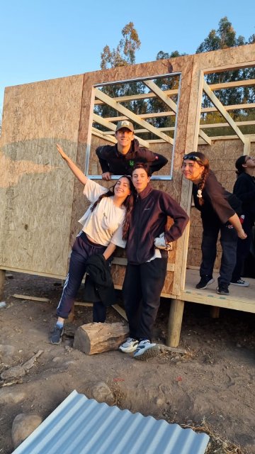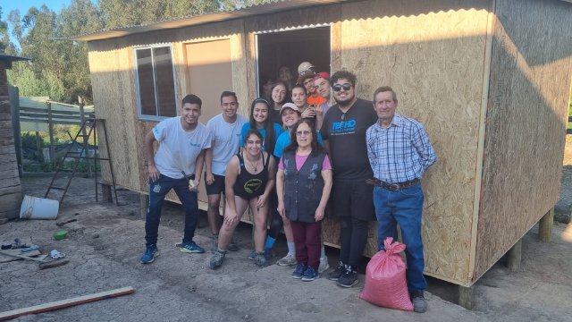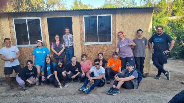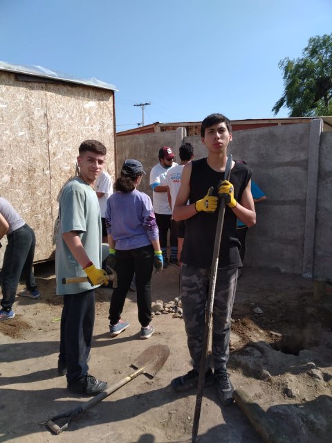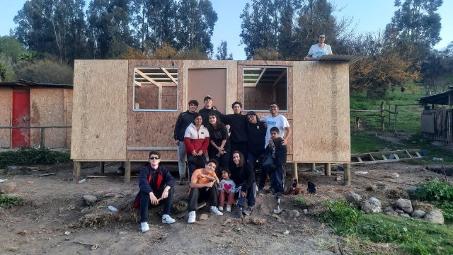 Este año, las/os jóvenes acompañados por integrantes de la fundación de Techo para Chile, además de sus profesoras jefes, de asignatura y miembros del Equipo de Pastoral, construyeron viviendas transitorias de emergencia a cuatro familias de la comuna de Melipilla.