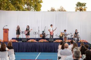Esta generación, entre sus muchos talentos, se ha destacado por su sensibilidad artística, expresada a través de la música. Es por esto que, durante la ceremonia, un grupo de estudiantes de IV Medio acompañadas/os por su profesor Felipe Alarcón, jefe del departamento de Música, interpretaron tres canciones que buscaban representara su largo viaje por la vida escolar.