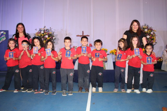 Ésta, inició con la presentación de una flor como ofrenda en el altar por los niños y niñas, quienes estaban acompañadas/os por sus profesoras jefes y ayudantes. Estas flores representaban a las/os estudiantes de la generación Kínder 2022, porque son diversos, distintos, únicos y especiales, con dones y talentos regalados por Dios.