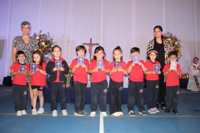 Más tarde, recibieron la Cruz que representa al colegio y a nuestra espiritualidad, es una imagen que nos recuerda permanentemente un don recibido, un camino recorrido, en fin, la presencia de Dios.