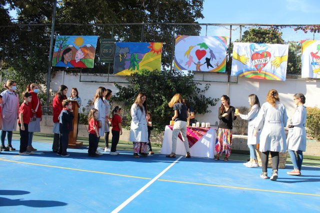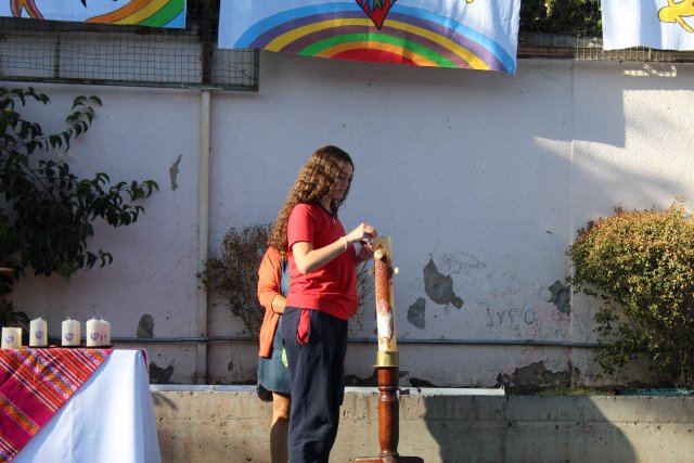 Finalmente, el lunes 10 de abril, todo el colegio se reunió en una liturgia para agradecer la Resurrección de Jesús. Fue un momento de mucha alegría en el que la comunidad escolar agradeció la Resurrección que nos trae esperanza para un tiempo mejor y la buena noticia que transforma el corazón para amar más y mejor.