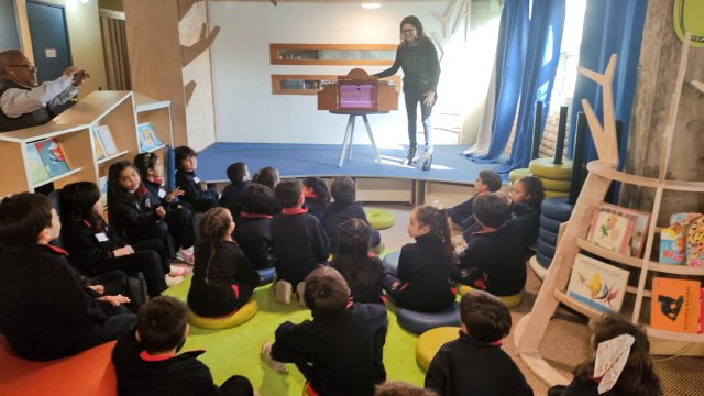 Desde el momento que partieron caminando hacia la biblioteca, su curiosidad por las cosas nuevas se hizo presente. Una vez llegaron a su destino, las niñas y niños participaron activamente en un tour guiado por los diferentes espacios, que culminó en el Rincón de Lectura Infantil, en el que tuvieron la oportunidad de escuchar un cuentacuentos kamishibai.