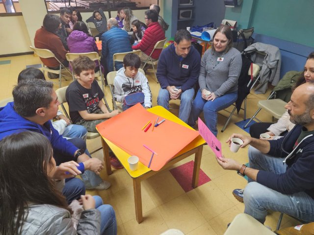 Esta instancia tuvo por objetivo crear un ambiente de confianza entre padres, madres e hijos/as, fomentando la comunicación y el conocimiento mutuo. Además, se buscó que las familias establecieran vínculos de confianza, compartiendo perspectivas sobre la comunicación y creando una red de apoyo y empatía en el grupo.