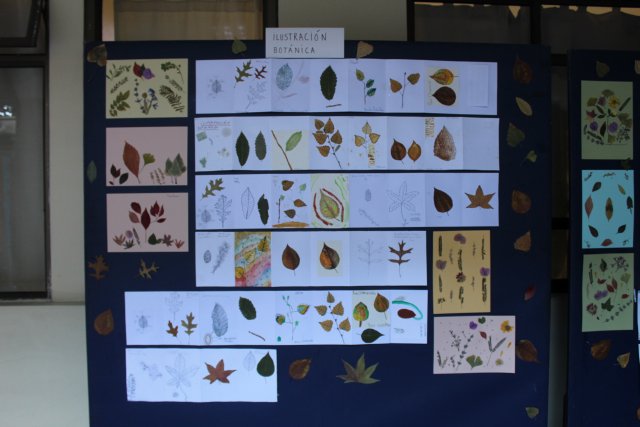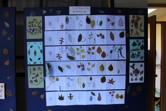 Esta exhibición contiene, por un lado, los dibujos de árboles europeos que vieron en clases en un libro botánico y en diferentes presentaciones. Y, por otro lado, los collages creados por las hojas y flores que habían sido prensadas y recolectadas por cada alumno/a.