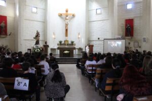 Por otro lado, las/os estudiantes del 2° y 3° Ciclo participaron en una Eucaristía realizada en la parroquia Santa Rita, presidida por el padre Pablo González sj. Aquí la comunidad escolar agradeció la espiritualidad que nos enseña a rezar, creer, discernir buscando la voluntad de Dios, compartir la vida en comunidad, movilizarse por la justicia, vivir la esperanza, buscar el Magis. En fin, la espiritualidad que nos forma para en todo amar y servir.