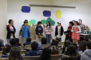 En el 1° Ciclo, los niños y niñas tuvieron la oportunidad de ver una obra sobre la solidaridad, realizada por las/os estudiantes de 6° básico y, más tarde, trabajaron en la creación de distintos proyectos.