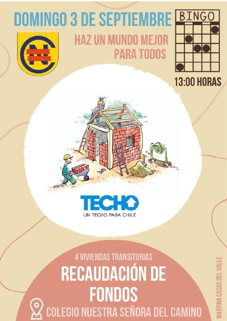Como en años anteriores, el 70% irá para Techo y el 30% de lo recaudado irá en beneficio del fondo solidario de nuestra comunidad (padres, apoderados, profesores, auxiliares, administrativos, …).
