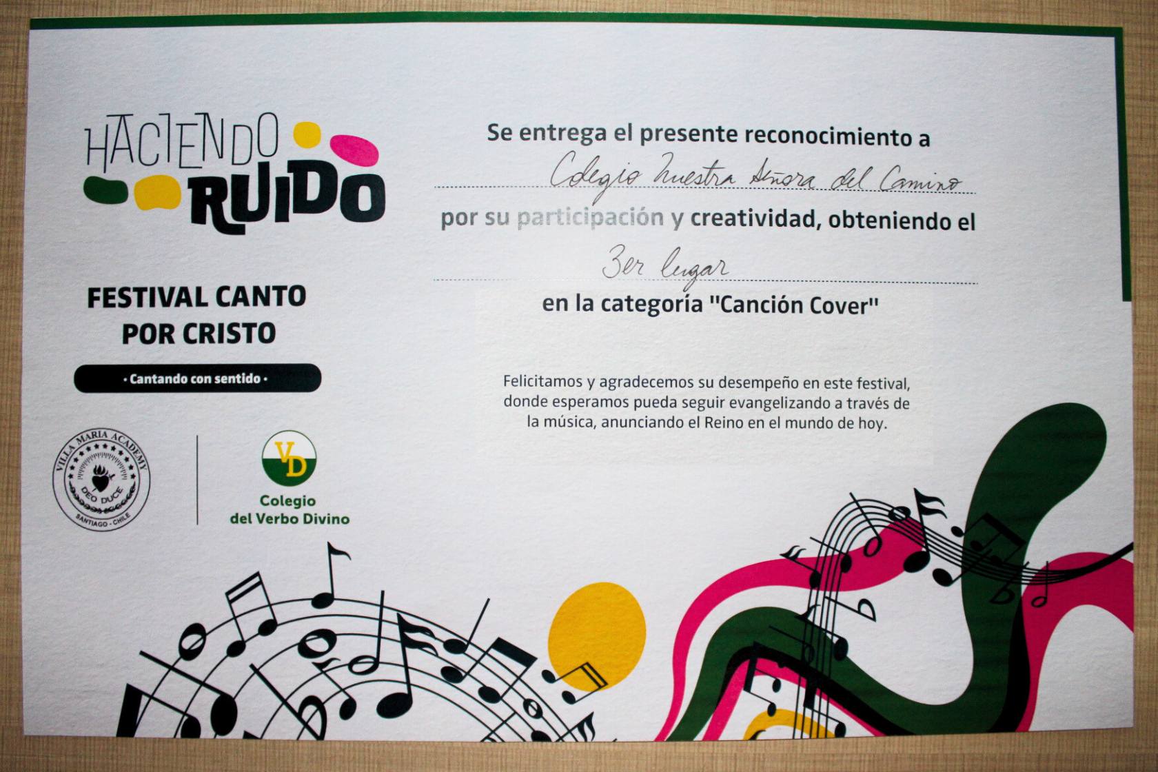 Este festival se llevó a cabo el sábado 19 de agosto en el colegio Verbo Divino. Fue parte del evento Haciendo Ruido, que convocó a jóvenes de Enseñanza Media de diferentes colegios, motivados por la fe y el servicio, a participar en el festival y en una feria de proyectos sociales.