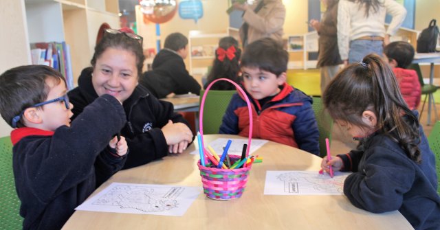 Fue una jornada muy entretenida, los niños y niñas recorrieron la biblioteca, observaron un cuentacuentos kamishibai, dibujaron, pintaron, leyeron en el rincón de la lectura y finalmente, fueron al “cine”.