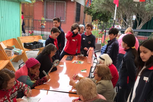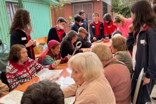 El miércoles 18 octubre, los 6° Básicos realizaron un apostolado como generación en la Villa Padre Hurtado. Acompañando a las y los adultos mayores de este lugar, trabajando en la limpieza de patios, pasillos, vidrios y salas, generando espacios de diálogo y un entretenido Bingo.