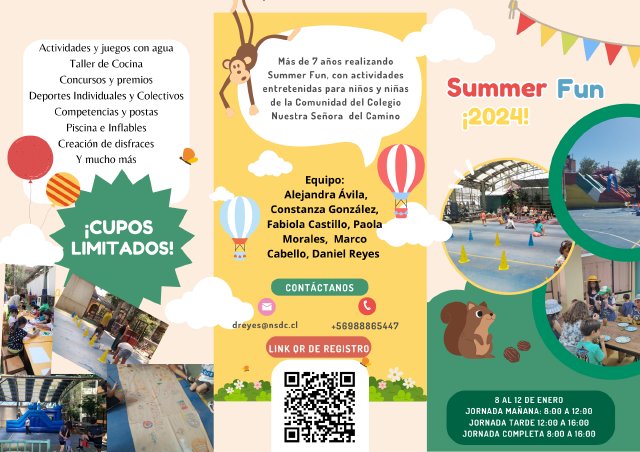 Summer Fun, es un campamento de verano, en el que se hacen actividades recreativas, competencias, juegos lúdicos y otros, en donde los y las estudiantes de la comunidad puedan tener un espacio entretenido y seguro del que puedan disfrutar del verano.