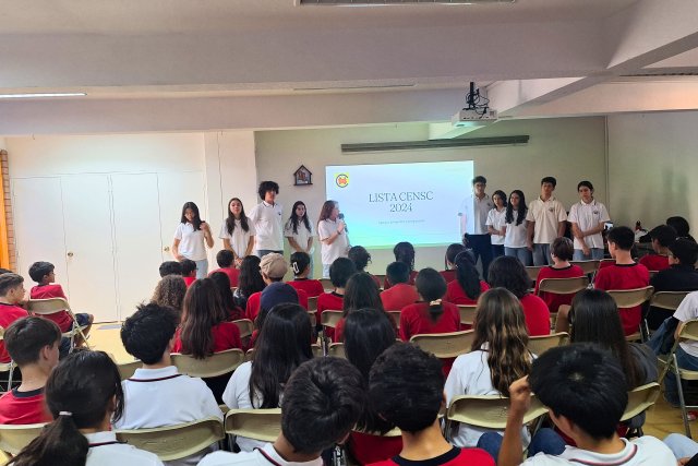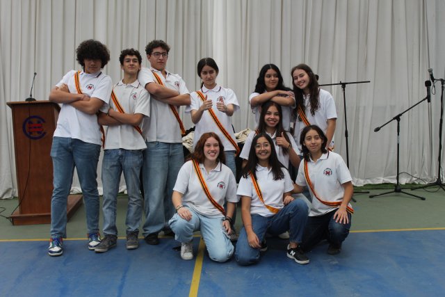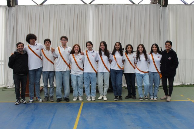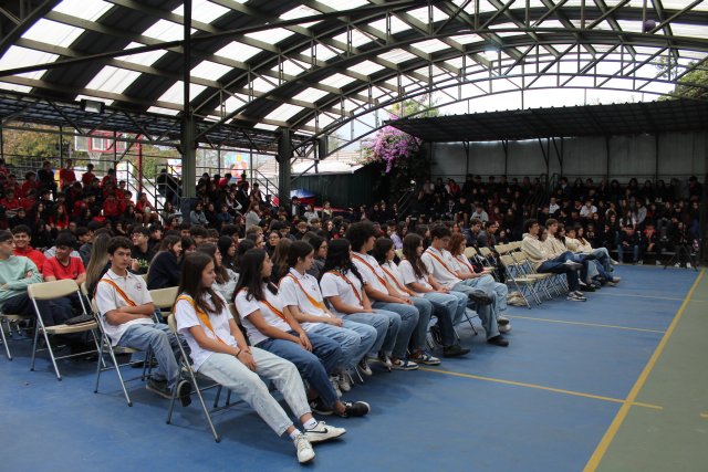 El Cambio de Mando del Centro de Estudiante contó con la presencia del Equipo Directivo, profesores y las/os estudiantes del 3° Ciclo. El acto fue dirigido por Constanza González, profesora asesora del CENSC, y Daniel Reyes, profesor que se integra como asesor al Centro de Estudiantes 2024.