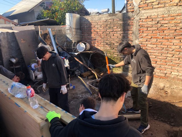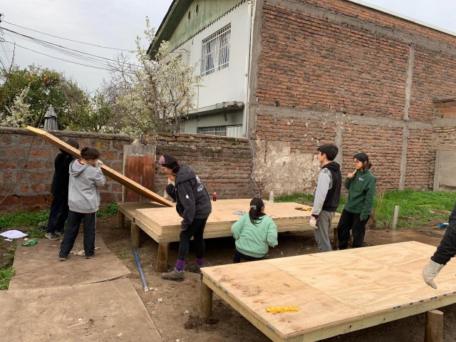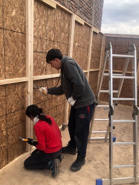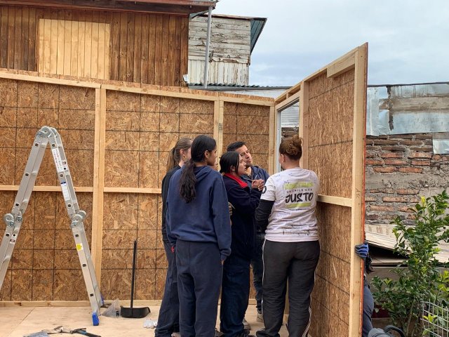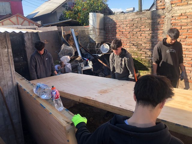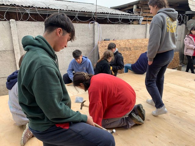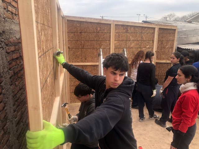 La Experiencia de Servicio busca ofrecer a nuestras y nuestros estudiantes un encuentro con realidades distintas a las suyas, ampliando sus horizontes y profundizando su compromiso con Cristo presente en el rostro del prójimo, especialmente en quienes más lo necesitan. En esta ocasión, las/os jóvenes construyeron viviendas para las familias de Máximo, Macarena, Jennifer y Olga, completando la labor con la instalación de muebles fabricados previamente en el Día de la Solidaridad.