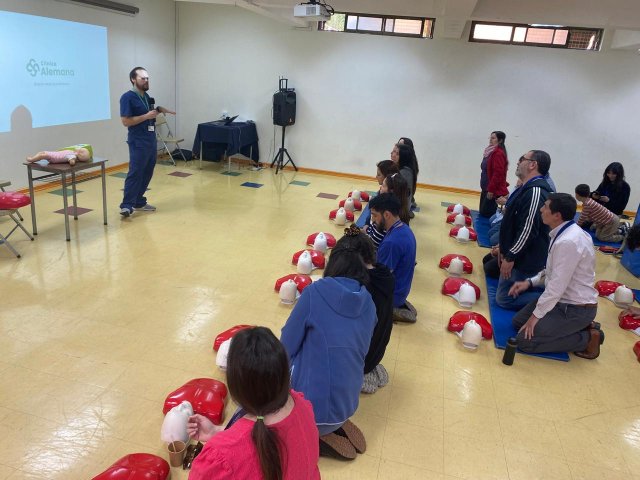 Esta instancia formativa fue dirigida por profesionales de la Clínica Alemana, quienes guiaron a nuestros funcionarios y apoderados en el aprendizaje de conocimientos básicos y vitales para estar preparados frente a emergencias. La capacitación, que contó con una asistencia máxima de 40 personas por jornada, se realizó de 16:00 a 18:00 horas en las dependencias del colegio.