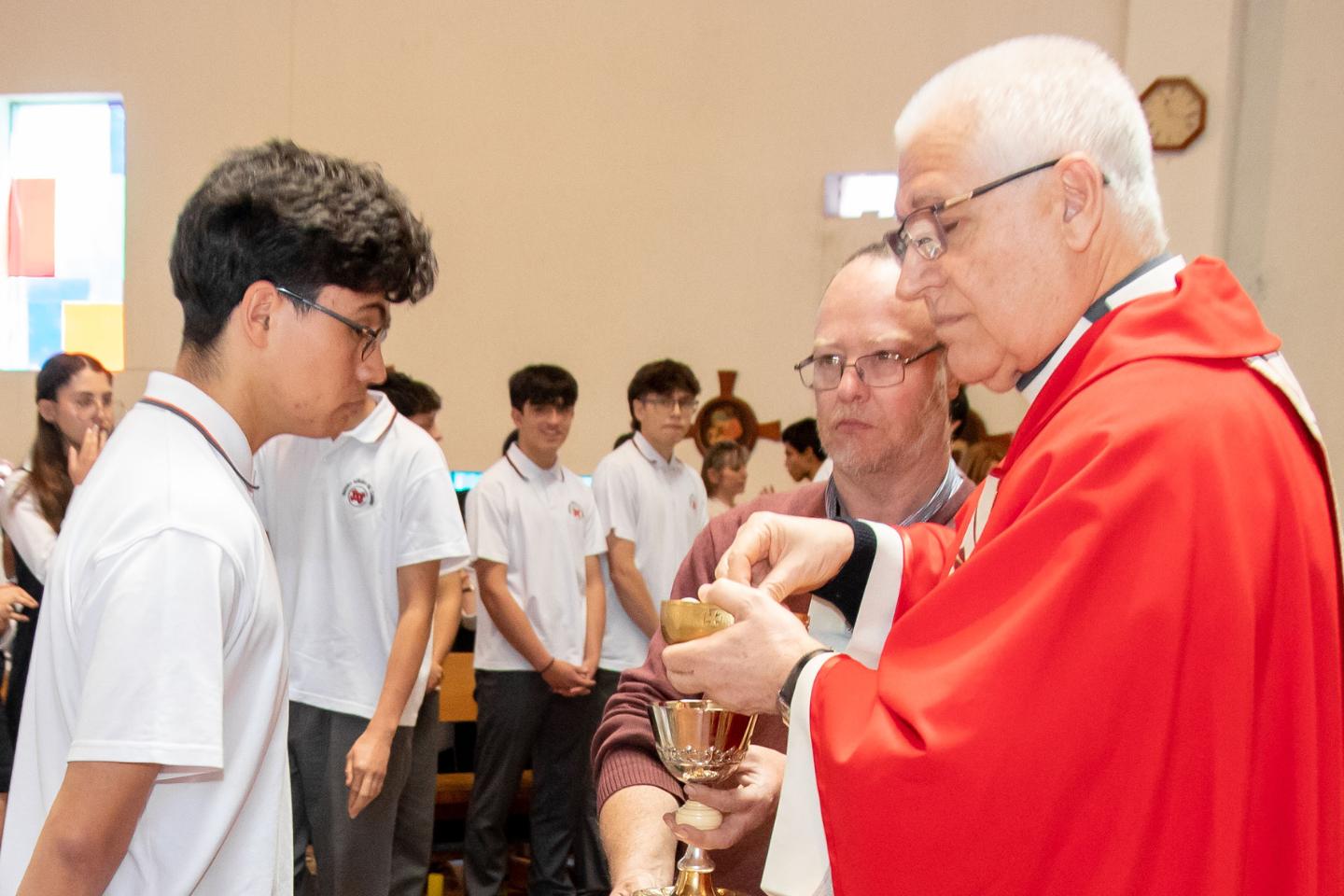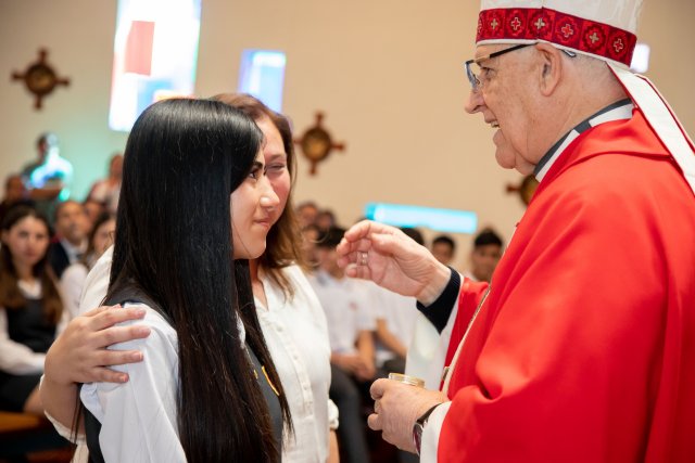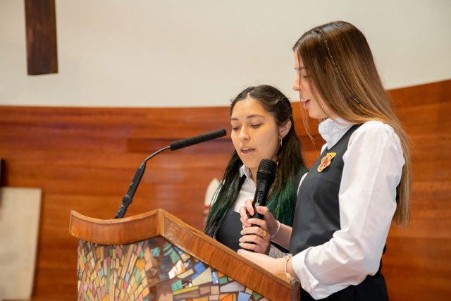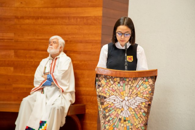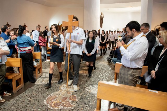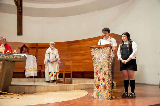 Durante la ceremonia, las alumnas y alumnos pidieron la fuerza para luchar por la verdad, la justicia y el amor, fieles a la Iglesia que sueñan construir.