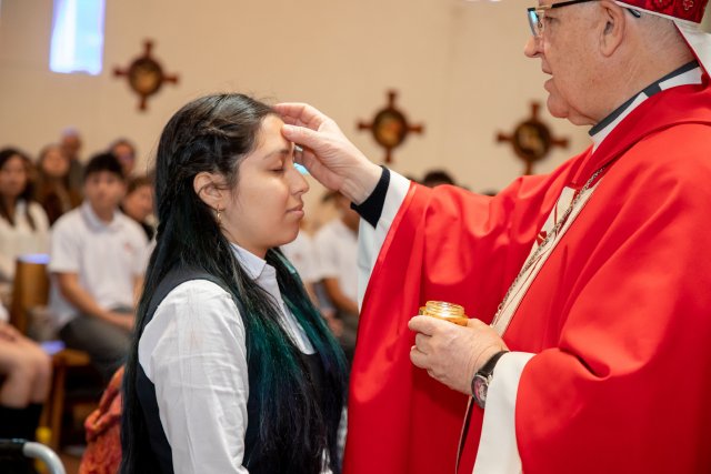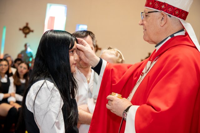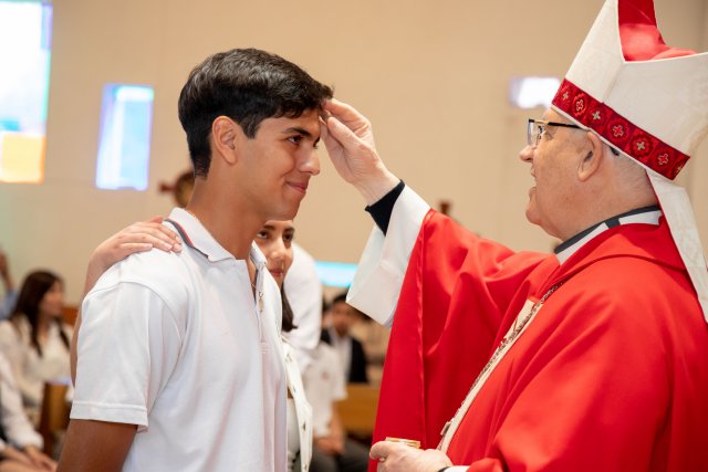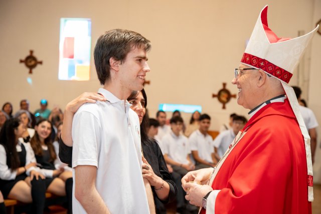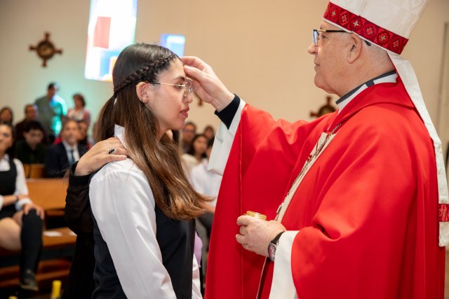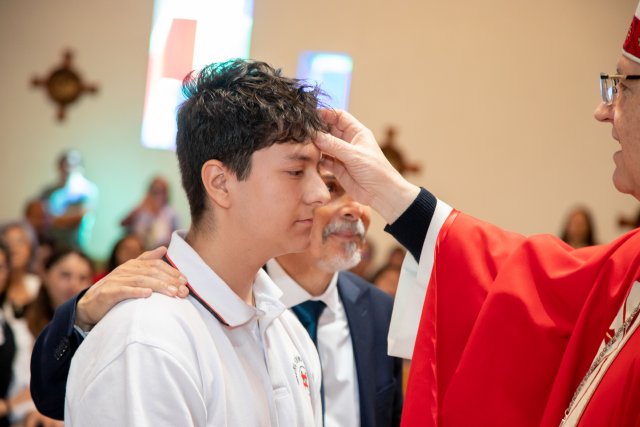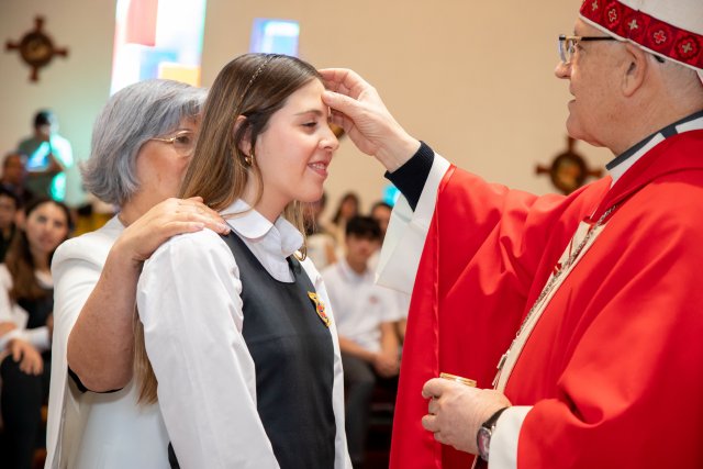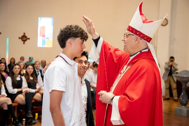 El sábado 5 de octubre, 24 estudiantes de IV Medio recibieron el Sacramento de la Confirmación en una ceremonia presidida por el Obispo Auxiliar de Santiago, Padre Alberto Lorenzelli Rossi. La comunidad se reunió para acompañar a estos(as) jóvenes, quienes, luego de un tiempo de preparación y discernimiento iniciado en III Medio, reafirmaron su compromiso con el Evangelio, buscando seguir a Jesús en el servicio y el amor al prójimo.