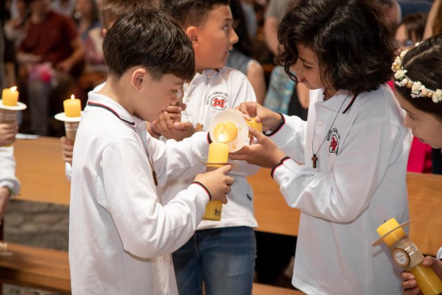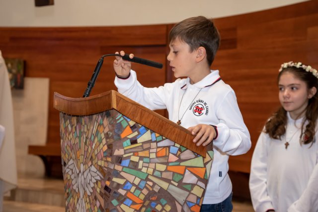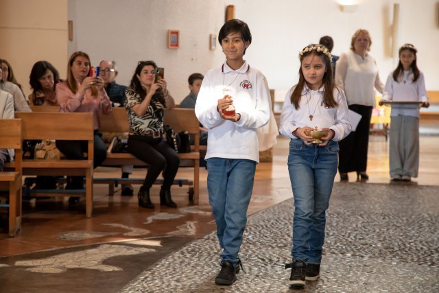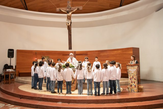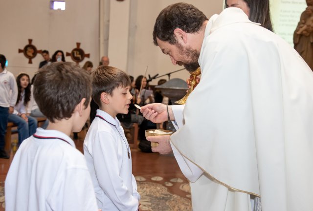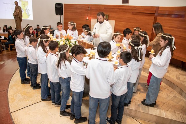 Con gran alegría y emoción, celebramos el sábado 19 de octubre, las Primeras Comuniones de los 4° Básicos. Las ceremonias, realizadas en la Parroquia San Carlos Borromeo, estuvieron presididas por Juan Cristóbal García-Huidobro S.J. para el 4° Básico A y por el Padre Orlando Contreras S.J. para el 4° Básico B.